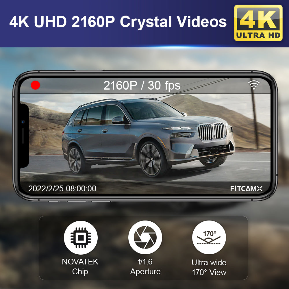 Adopted with f/1.6 big aperture lens and Novatek chip to enable high-definition video at 2160P/30fps, Fitcamx OEM style dash cam can improve image performance in all aspects. It has quite smooth picture and video quality, and can record clear video under low or high light.
