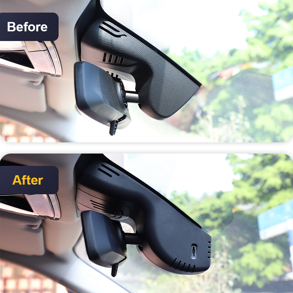 FITCAMX dash cam has brand-new methods for power from Rain sensor with hidden wiring and easy installation with the method of plug to plug. No need to remove A-pillar and connect the car fuse box and the cigarette lighter.