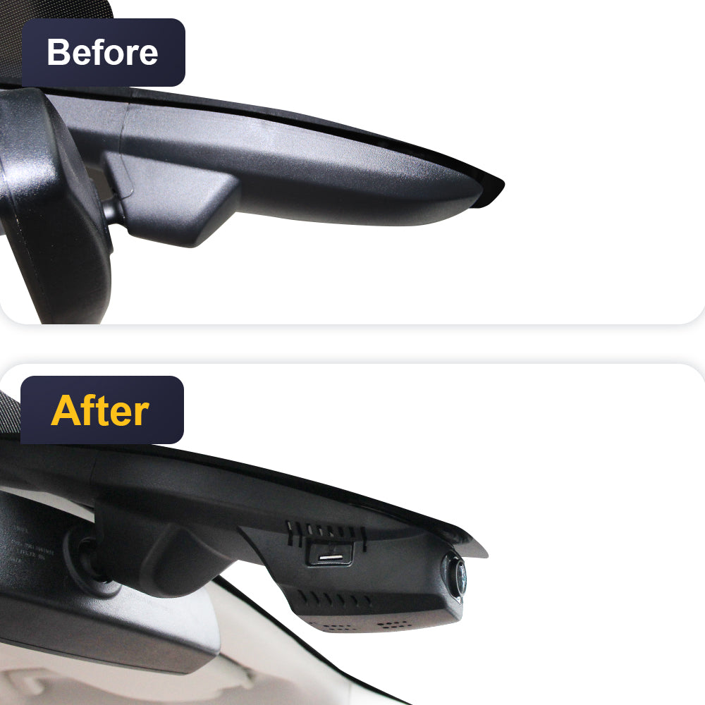 The OEM-style dash cam with a 1:1 restoration of the original rearview mirror back cover shape design, which will not block the driving line of sight.