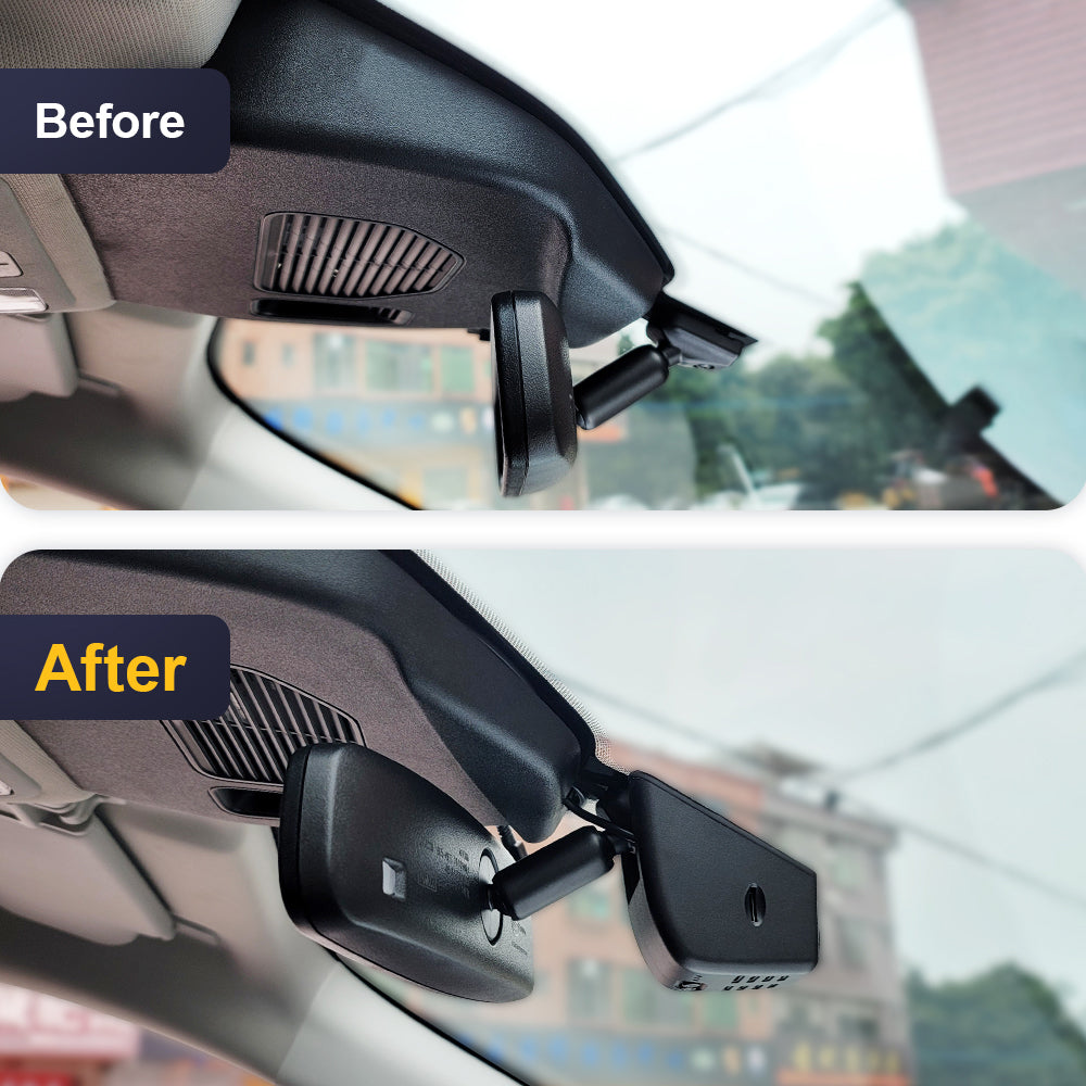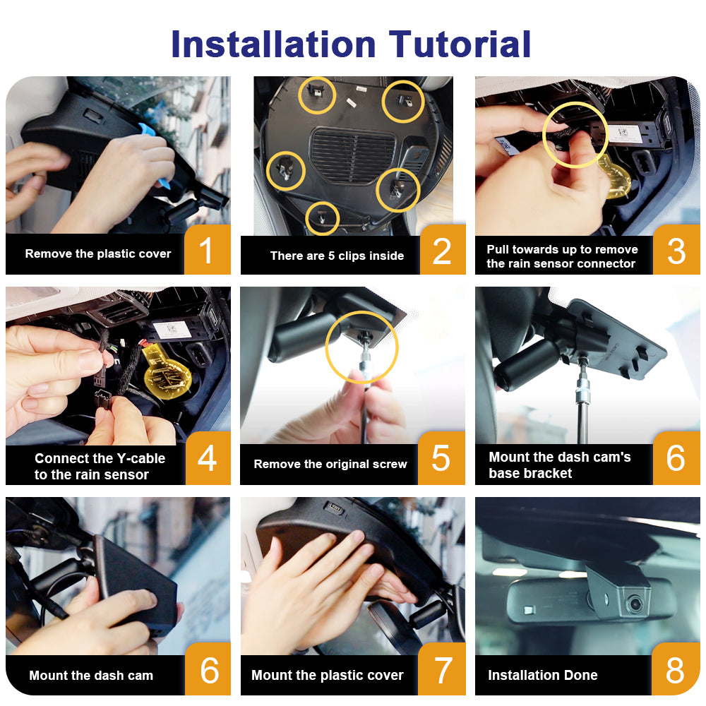 FITCAMX dash cam has brand-new methods for power from Rain sensor with hidden wiring and easy installation with the method of plug to plug. No need to remove A-pillar and connect the car fuse box and the cigarette lighter.