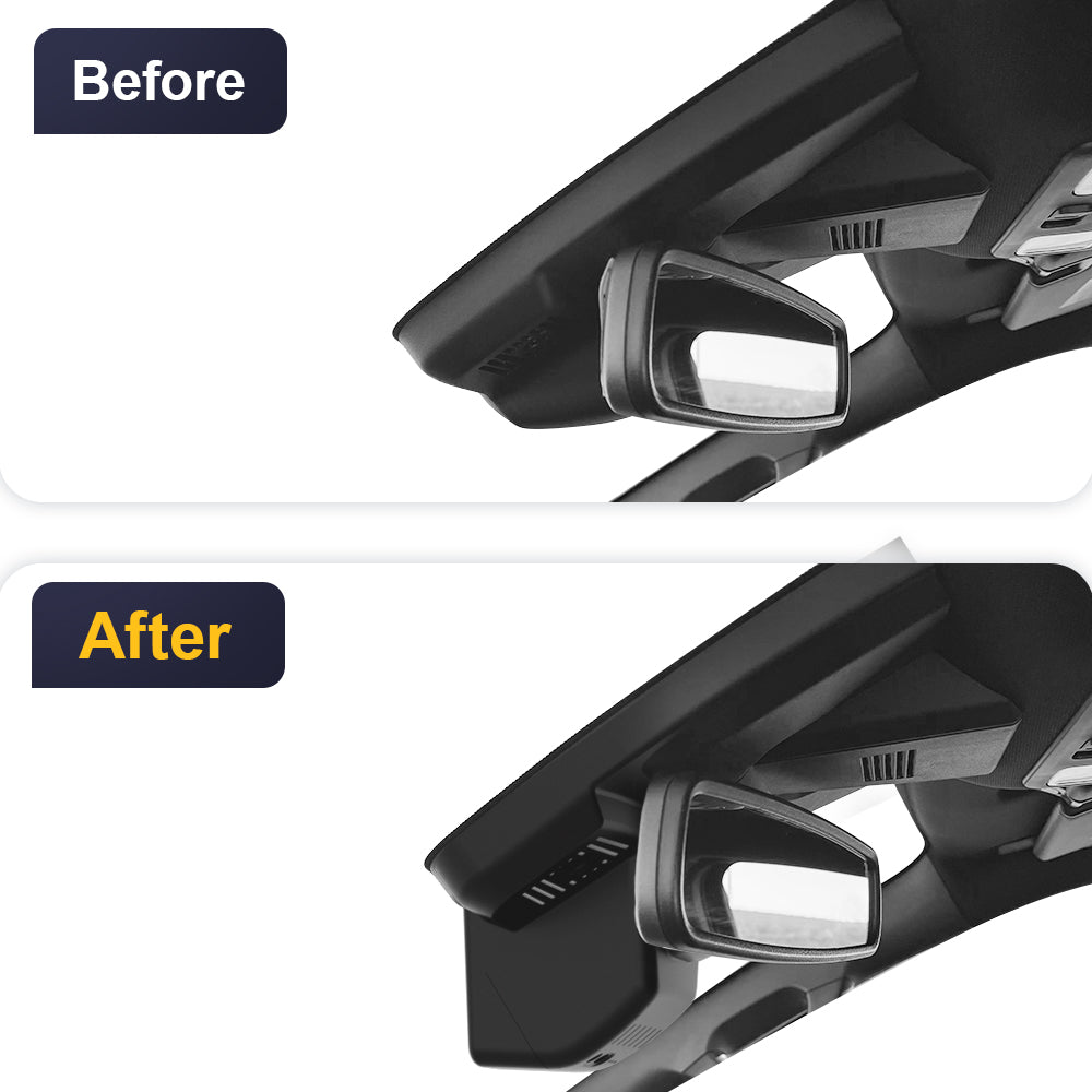 The OEM-style dash cam with a 1:1 restoration of the original rearview mirror back cover shape design, which will not block the driving line of sight.