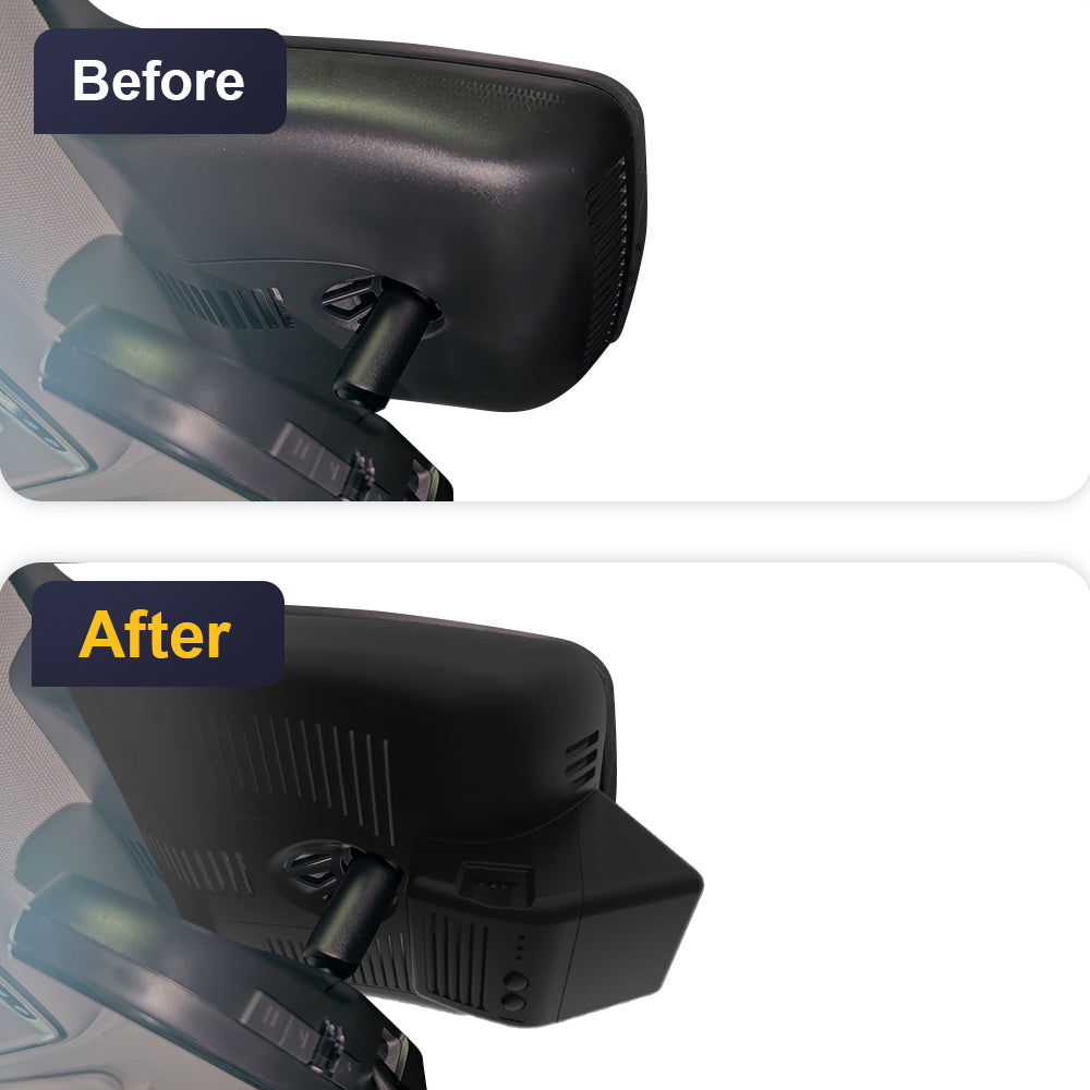 The OEM-style dash cam with a 1:1 restoration of the original rearview mirror back cover shape design, which will not block the driving line of sight.