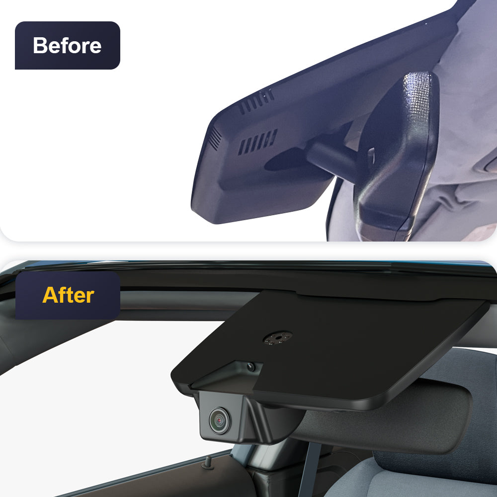 The OEM-style dash cam with a 1:1 restoration of the original rearview mirror back cover shape design, which will not block the driving line of sight.