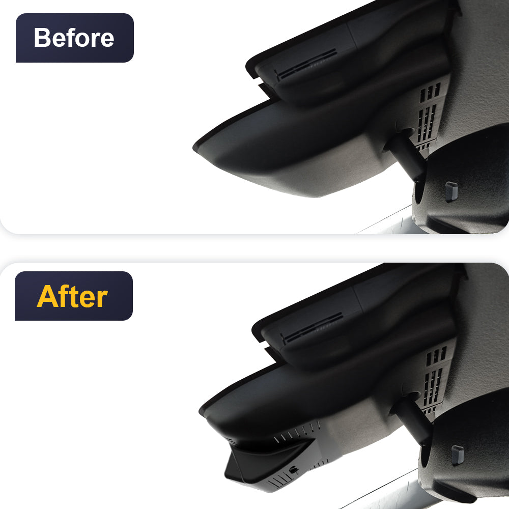 The OEM-style dash cam with a 1:1 restoration of the original rearview mirror back cover shape design, which will not block the driving line of sight.