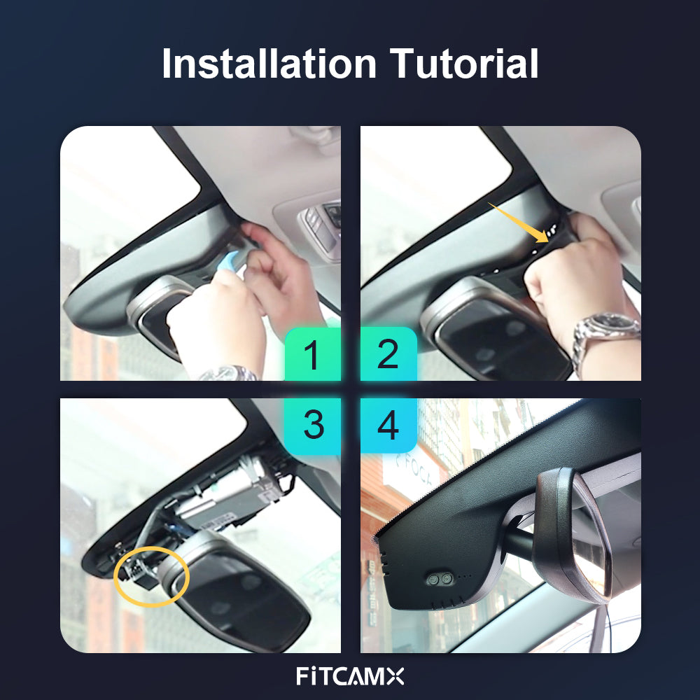 FITCAMX dash cam has brand-new methods for power from Auto-dimming rear view mirror with hidden wiring and easy installation with the method of plug to plug. No need to remove A-pillar and connect the car fuse box and the cigarette lighter.