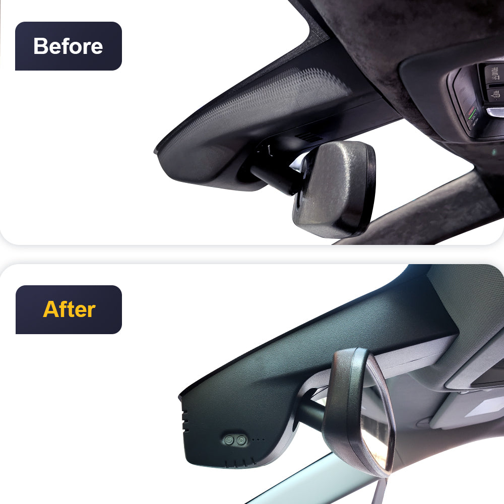 The OEM-style dash cam with a 1:1 restoration of the original rearview mirror back cover shape design, which will not block the driving line of sight.