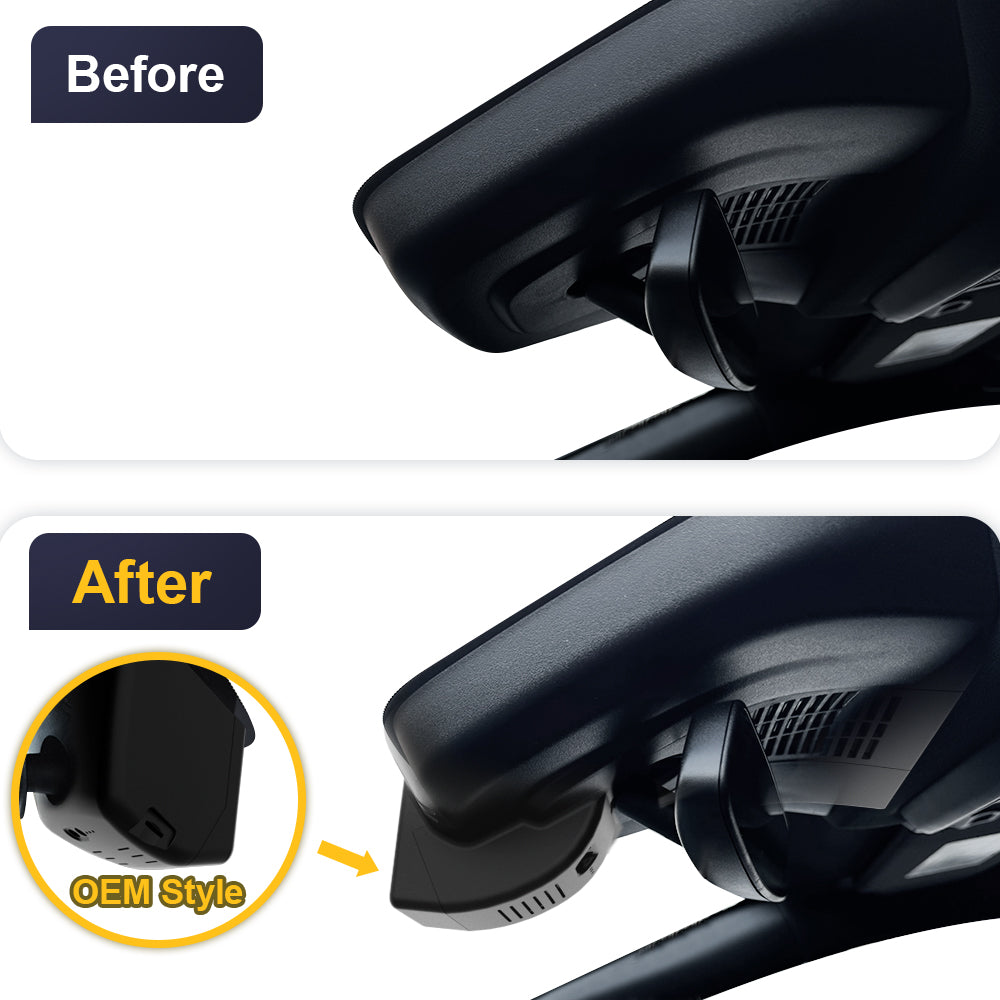 The OEM-style dash cam with a 1:1 restoration of the original rearview mirror back cover shape design, which will not block the driving line of sight.
