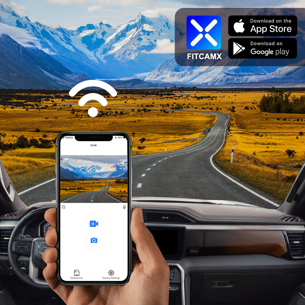 Using phone APP to connect the WiFi of FITCAMX dash cam for downloading videos and sharing them to your social media. Downloading videos is no need for mobile data traffic. (support in Android & IOS)