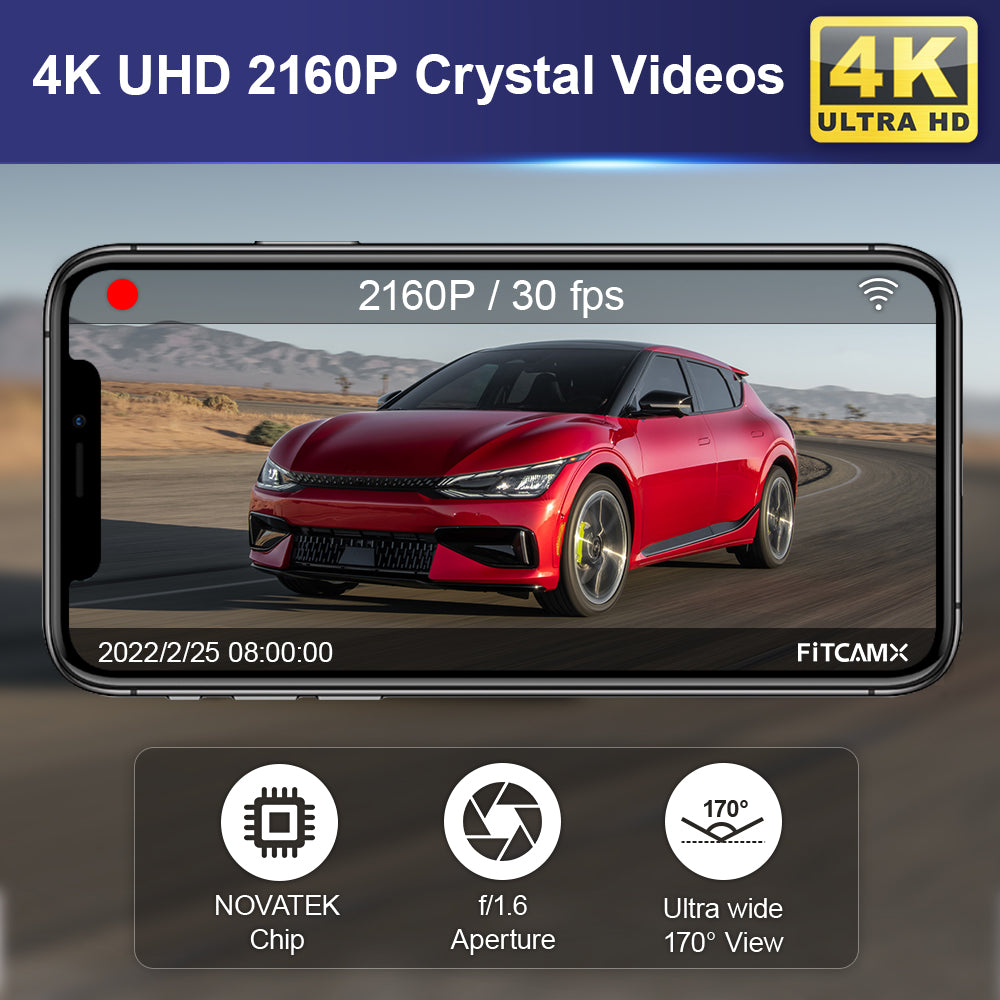 Adopted with f/1.6 big aperture lens and Novatek chip to enable high-definition video at 2160P/30fps, Fitcamx OEM style dash cam can improve image performance in all aspects. It has quite smooth picture and video quality, and can record clear video under low or high light.