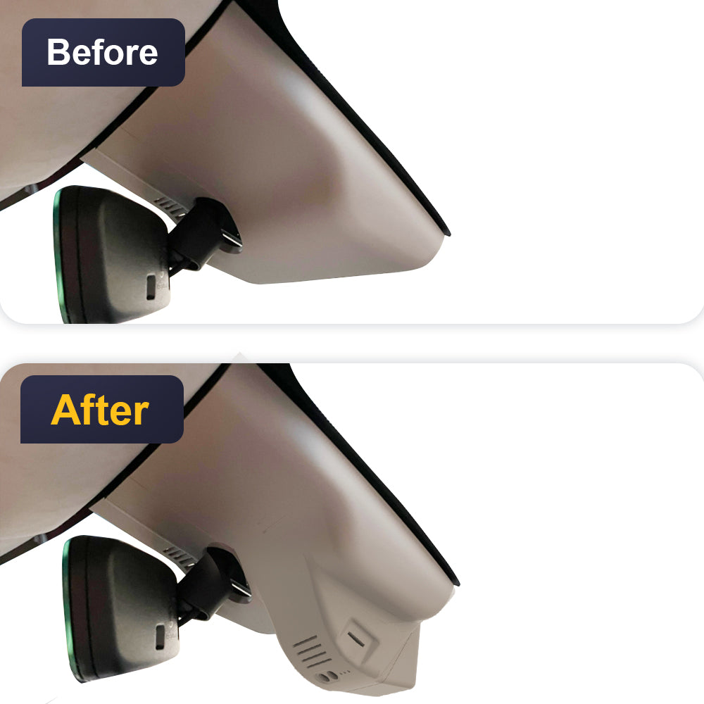 The OEM-style dash cam with a 1:1 restoration of the original rearview mirror back cover shape design, which will not block the driving line of sight.