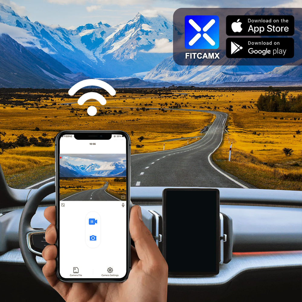 Using phone APP to connect the WiFi of FITCAMX dash cam for downloading videos and sharing them to your social media. Downloading videos is no need for mobile data traffic. (support in Android & IOS)
