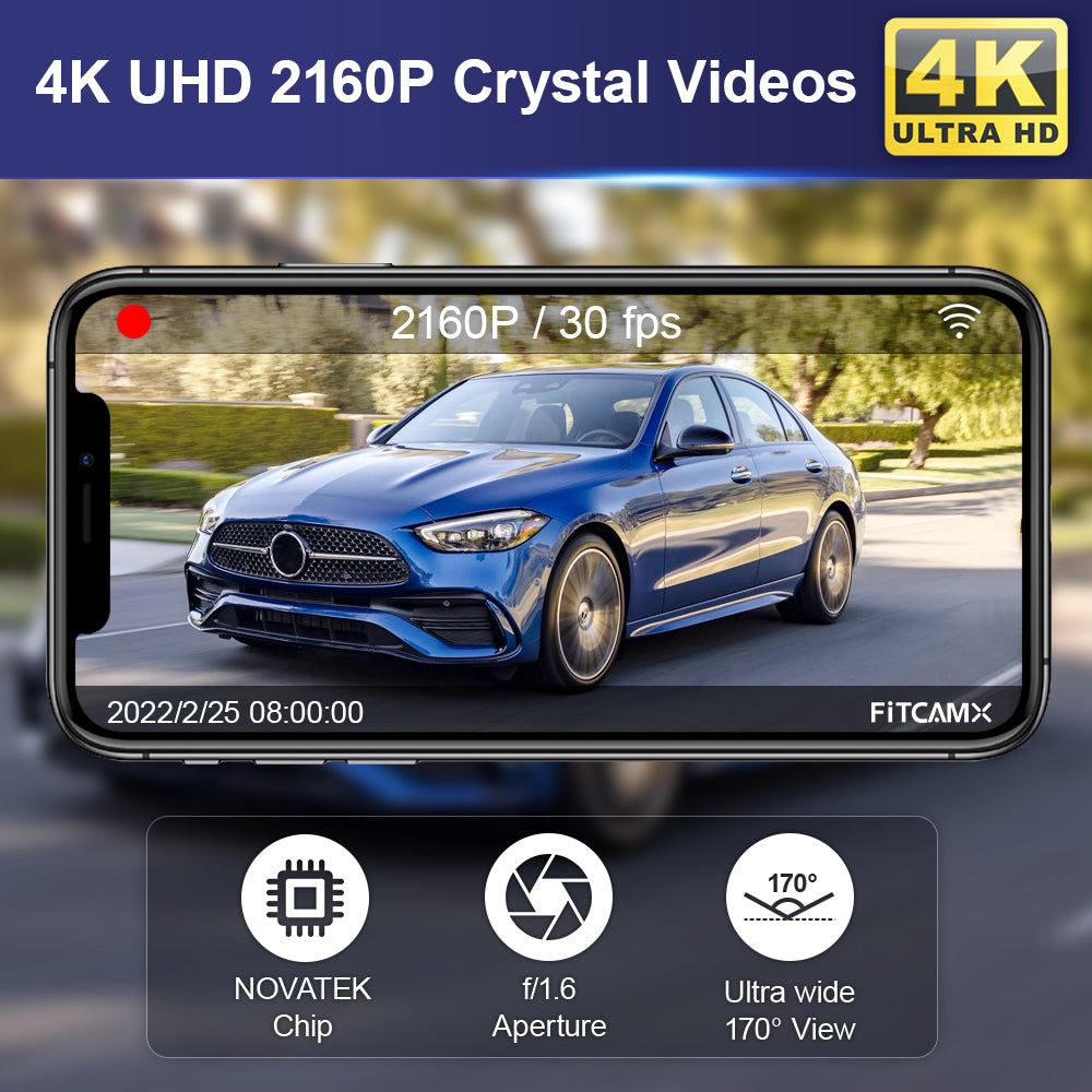 Adopted with f/1.6 big aperture lens and Novatek chip to enable high-definition video at 2160P/30fps, Fitcamx OEM style dash cam can improve image performance in all aspects. It has quite smooth picture and video quality, and can record clear video under low or high light.