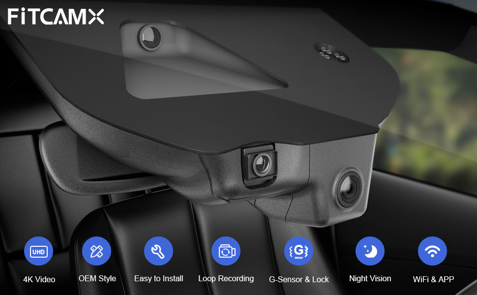 FITCAMX dash cam has brand-new methods for power from Rain sensor with hidden wiring and easy installation with the method of plug to plug. No need to remove A-pillar and connect the car fuse box and the cigarette lighter.