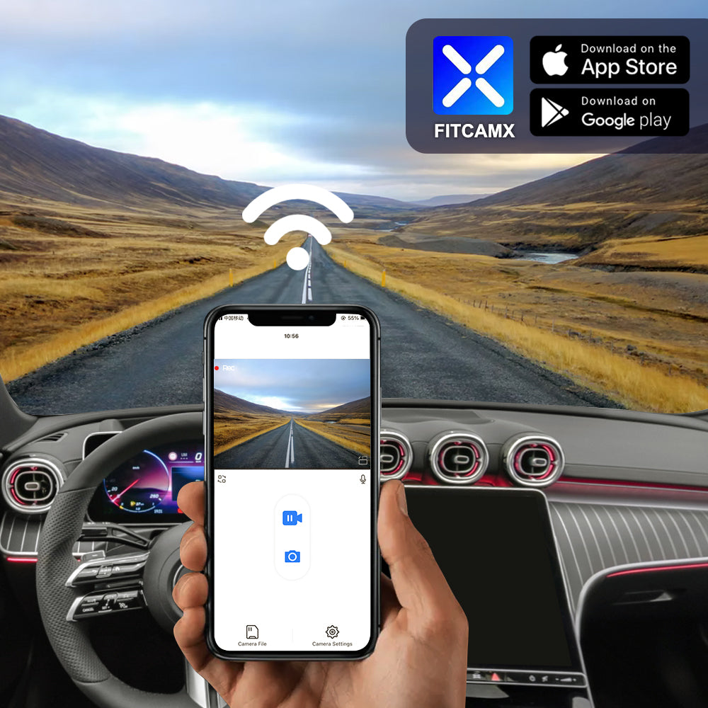 Using phone APP to connect the WiFi of FITCAMX dash cam for downloading videos and sharing them to your social media. Downloading videos is no need for mobile data traffic. (support in Android & IOS)