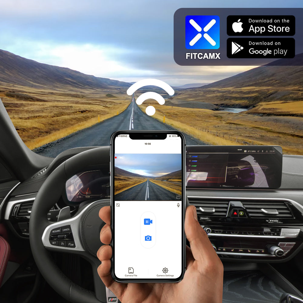 Verwenden Sie die Telefon-App, um das WLAN der FITCAMX-Dashcam zu verbinden, um Videos herunterzuladen und sie in Ihren sozialen Medien zu teilen. Für das Herunterladen von Videos ist kein mobiler Datenverkehr erforderlich. (Unterstützung in Android und IOS)