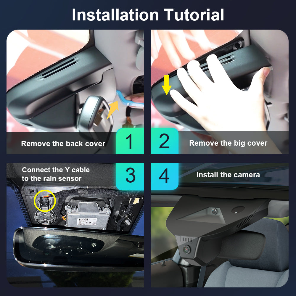 Die FITCAMX-Dashcam verfügt über brandneue Methoden zur Stromversorgung über den Regensensor mit versteckter Verkabelung und einfacher Installation mit der Plug-to-Plug-Methode. Es ist nicht erforderlich, die A-Säule zu entfernen und den Sicherungskasten des Autos und den Zigarettenanzünder anzuschließen.