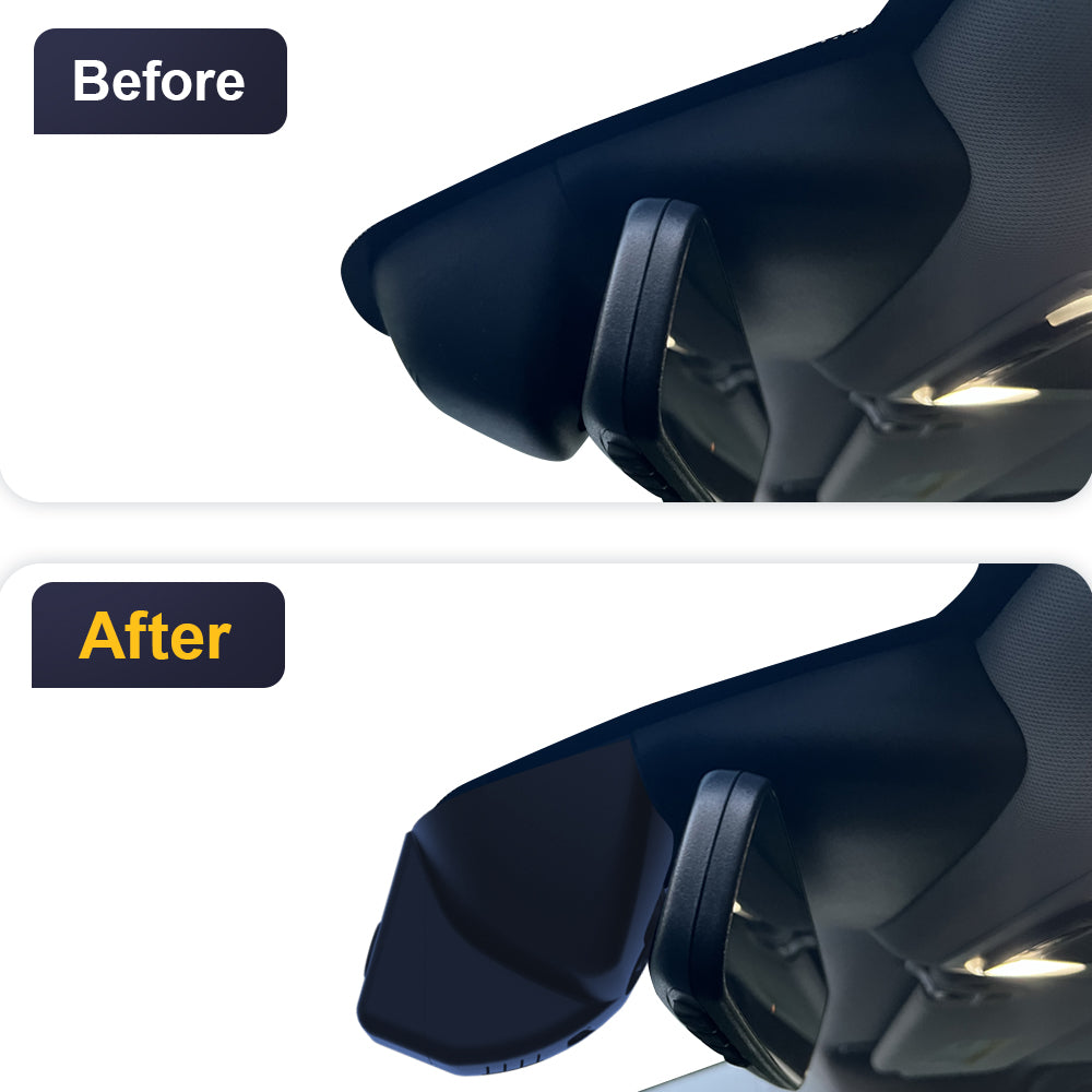 Fitcamx Dash Cam verfügt über brandneue Methoden für Strom von Overhead -Konsolen -Panel mit versteckter Verkabelung und einfacher Installation mit der Methode des Steckers zum Stecker. Sie müssen keine A-Säule entfernen und die Sicherungsschachtel und die Zigarette leichter anschließen.