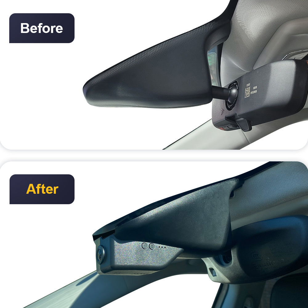 Die Dashcam im OEM-Stil mit einer 1:1-Wiederherstellung der ursprünglichen Form der hinteren Rückspiegelabdeckung, die die Sichtlinie des Fahrers nicht blockiert.