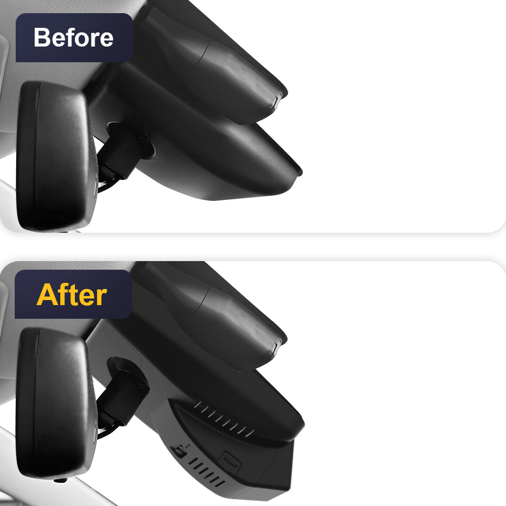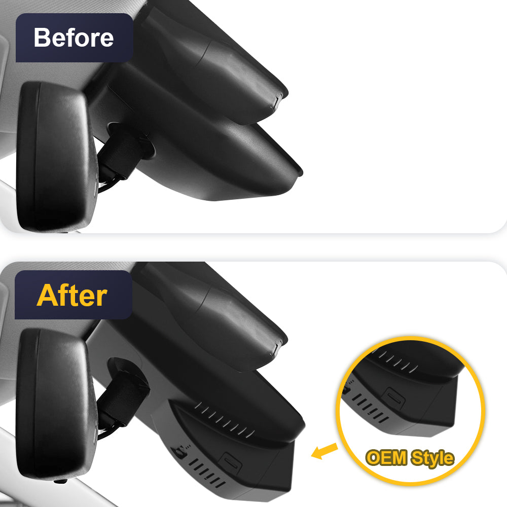 The OEM-style dash cam with a 1:1 restoration of the original rearview mirror back cover shape design, which will not block the driving line of sight.