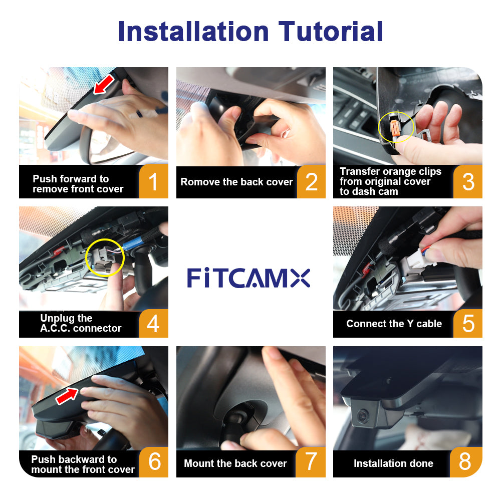 FITCAMX dash cam has brand-new methods for power from Adaptive cruise control (ACC) sensor with hidden wiring and easy installation with the method of plug to plug. No need to remove A-pillar and connect the car fuse box and the cigarette lighter.