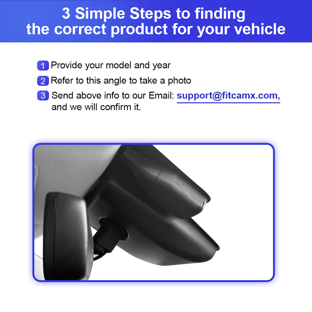 Noted: Since our products are custom dash cam, a photo of the rear mirror cover is necessary and we will check and send you the correct model. If no photo is provided, we will ship your order and may delay shipping or send the model not fit your car.