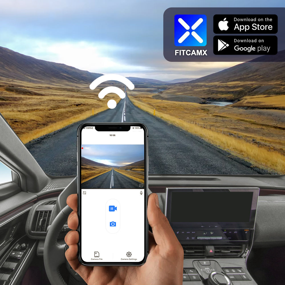 Verwenden Sie die Telefon-App, um das WLAN der FITCAMX-Dashcam zu verbinden, um Videos herunterzuladen und sie in Ihren sozialen Medien zu teilen. Für das Herunterladen von Videos ist kein mobiler Datenverkehr erforderlich. (Unterstützung in Android und IOS)