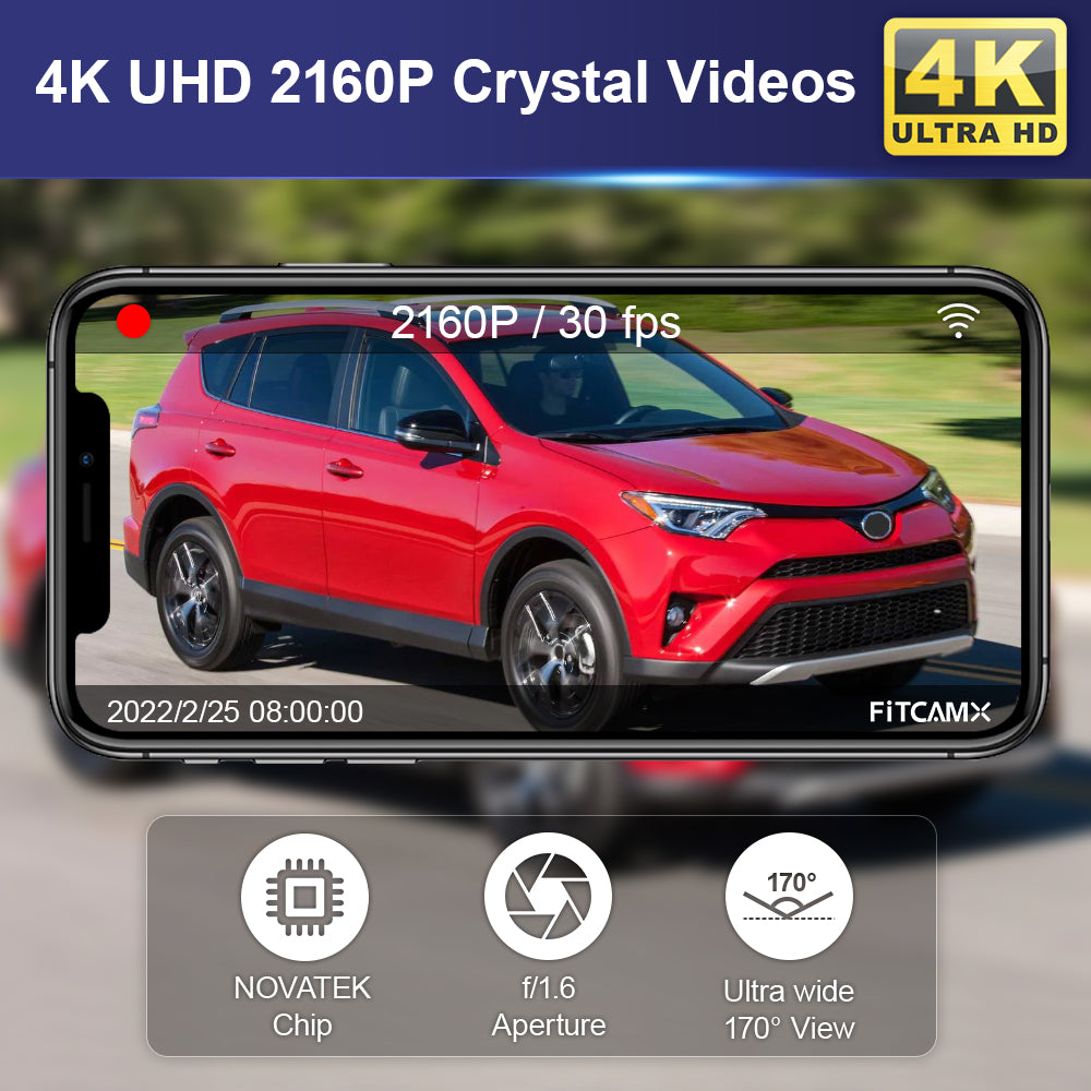 Ausgestattet mit einem f/1,6-Objektiv mit großer Blende und einem Novatek-Chip, um hochauflösendes Video mit 2160P/30 Bildern pro Sekunde zu ermöglichen, kann die Dashcam im OEM-Stil von Fitcamx die Bildleistung in jeder Hinsicht verbessern. Die Bild- und Videoqualität ist recht gleichmäßig und kann sowohl bei schwachem als auch bei hellem Licht klare Videos aufnehmen.