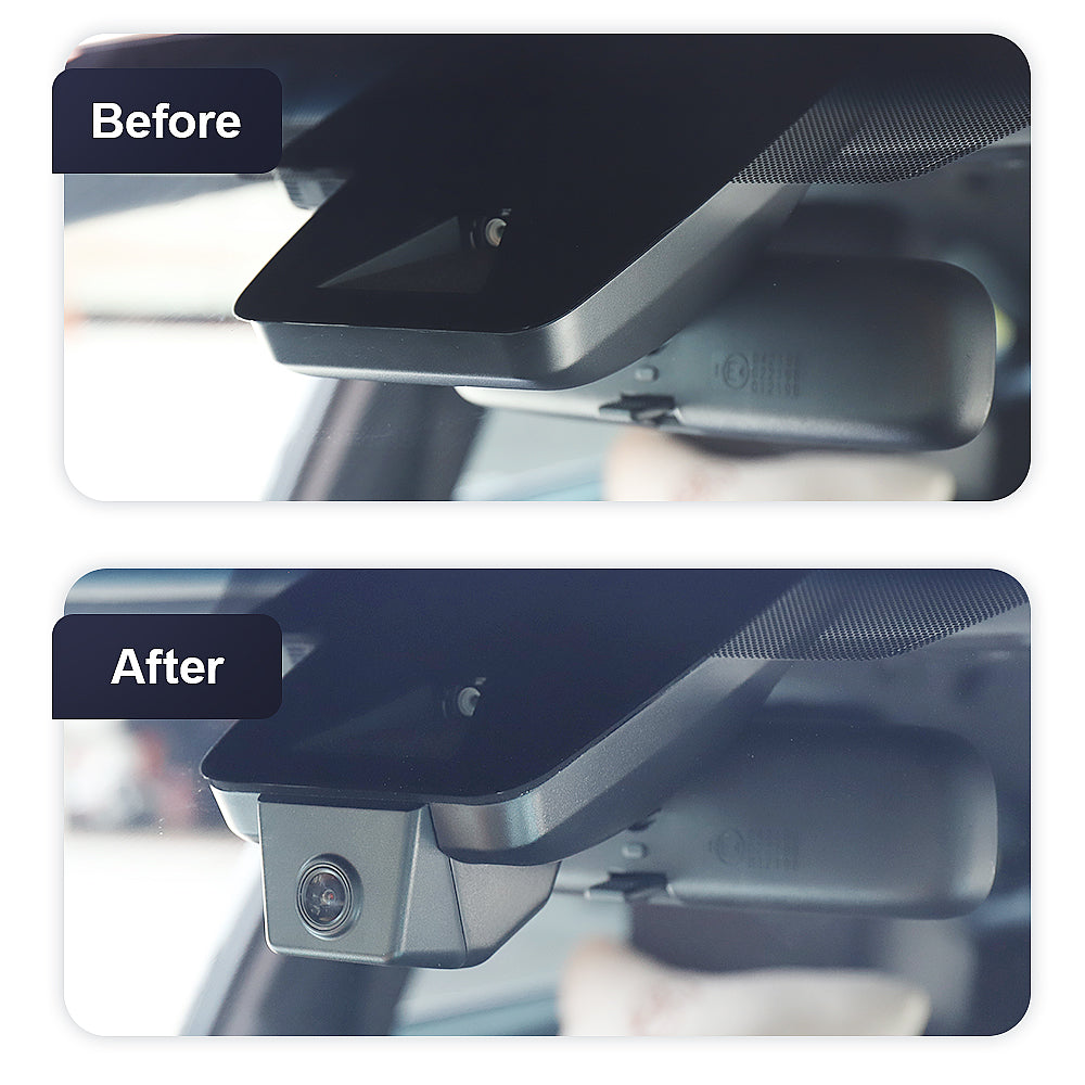 Die Dashcam im OEM-Stil mit einer 1:1-Wiederherstellung der ursprünglichen Form der hinteren Rückspiegelabdeckung, die die Sichtlinie des Fahrers nicht blockiert.