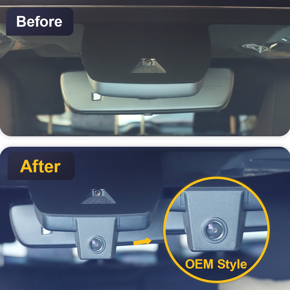 La cámara de tablero estilo OEM con una restauración 1:1 del diseño original de la forma de la cubierta trasera del espejo retrovisor, que no bloqueará la línea de visión de conducción.