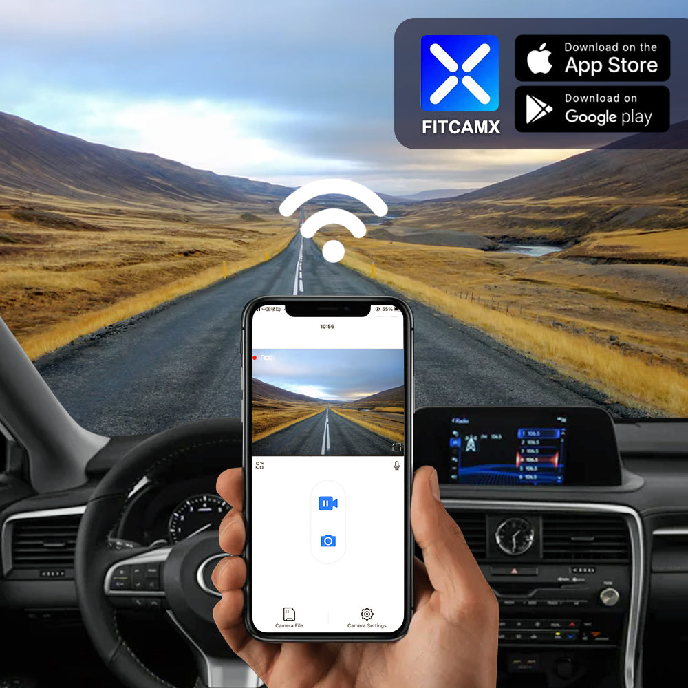 Usando la aplicación del teléfono para conectar el WiFi de la cámara de tablero FITCAMX para descargar videos y compartirlos en sus redes sociales. La descarga de vídeos no requiere tráfico de datos móviles. (soporte en Android e IOS)