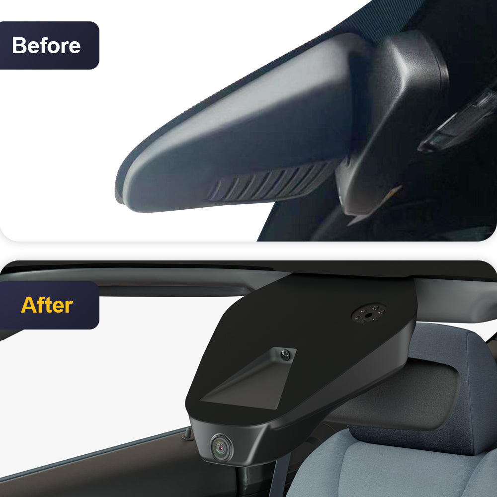 La cámara de tablero estilo OEM con una restauración 1:1 del diseño original de la forma de la cubierta trasera del espejo retrovisor, que no bloqueará la línea de visión de conducción.
