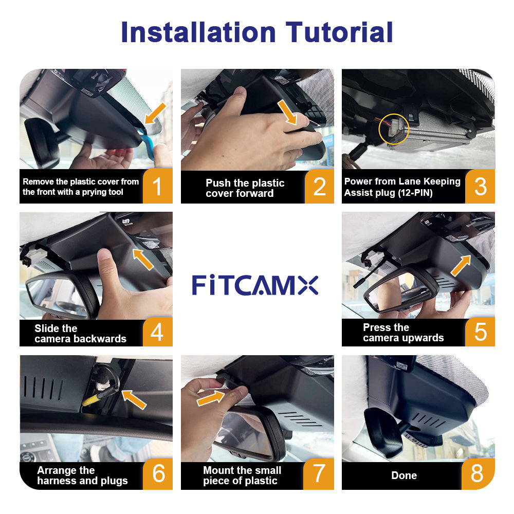 La cámara de tablero FitCamx tiene métodos nuevos para la energía de Sistema de mantenimiento de carril (12 pines) con cableado oculto e instalación fácil con el método de enchufe para enchufar. No es necesario eliminar el pilar A y conectar la caja de fusibles del automóvil y el encendedor del cigarrillo.