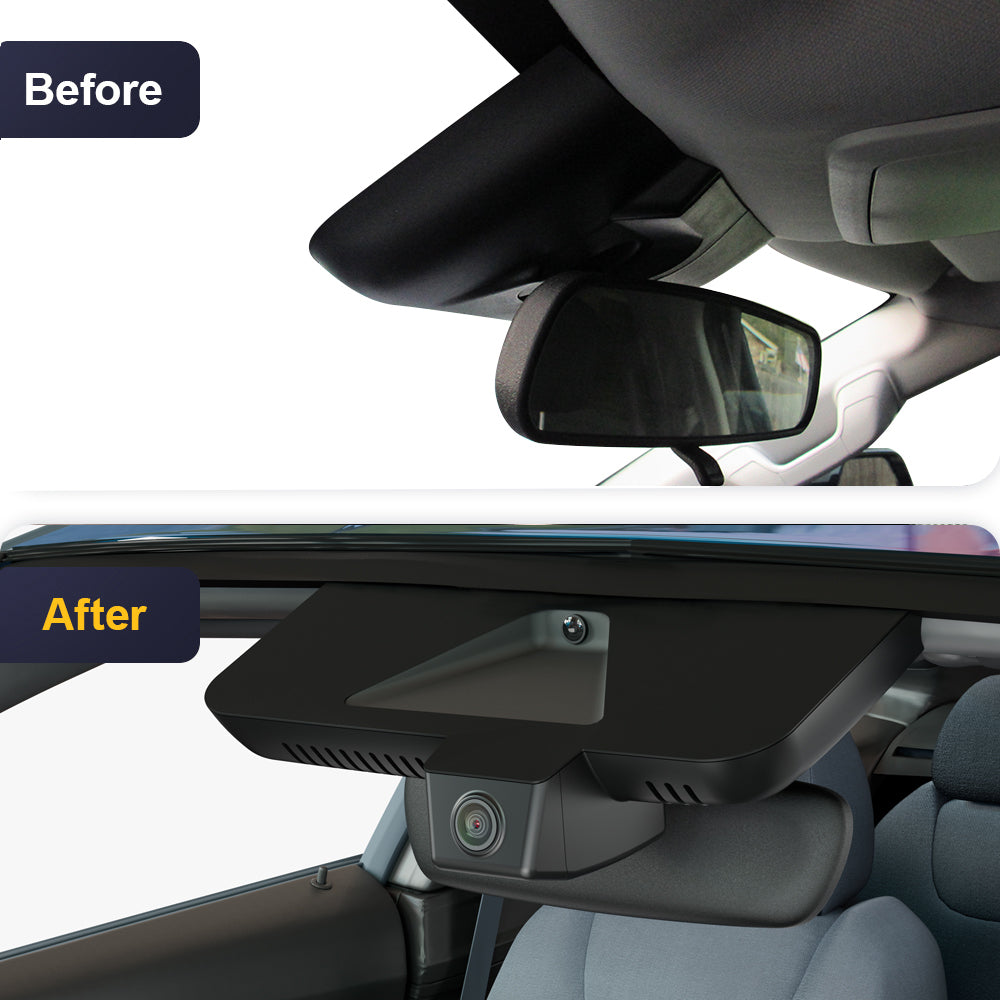 La cámara de tablero de estilo OEM con una restauración 1: 1 del diseño de la forma de la cubierta posterior del espejo retrovisor original, que no bloqueará la línea de visión.