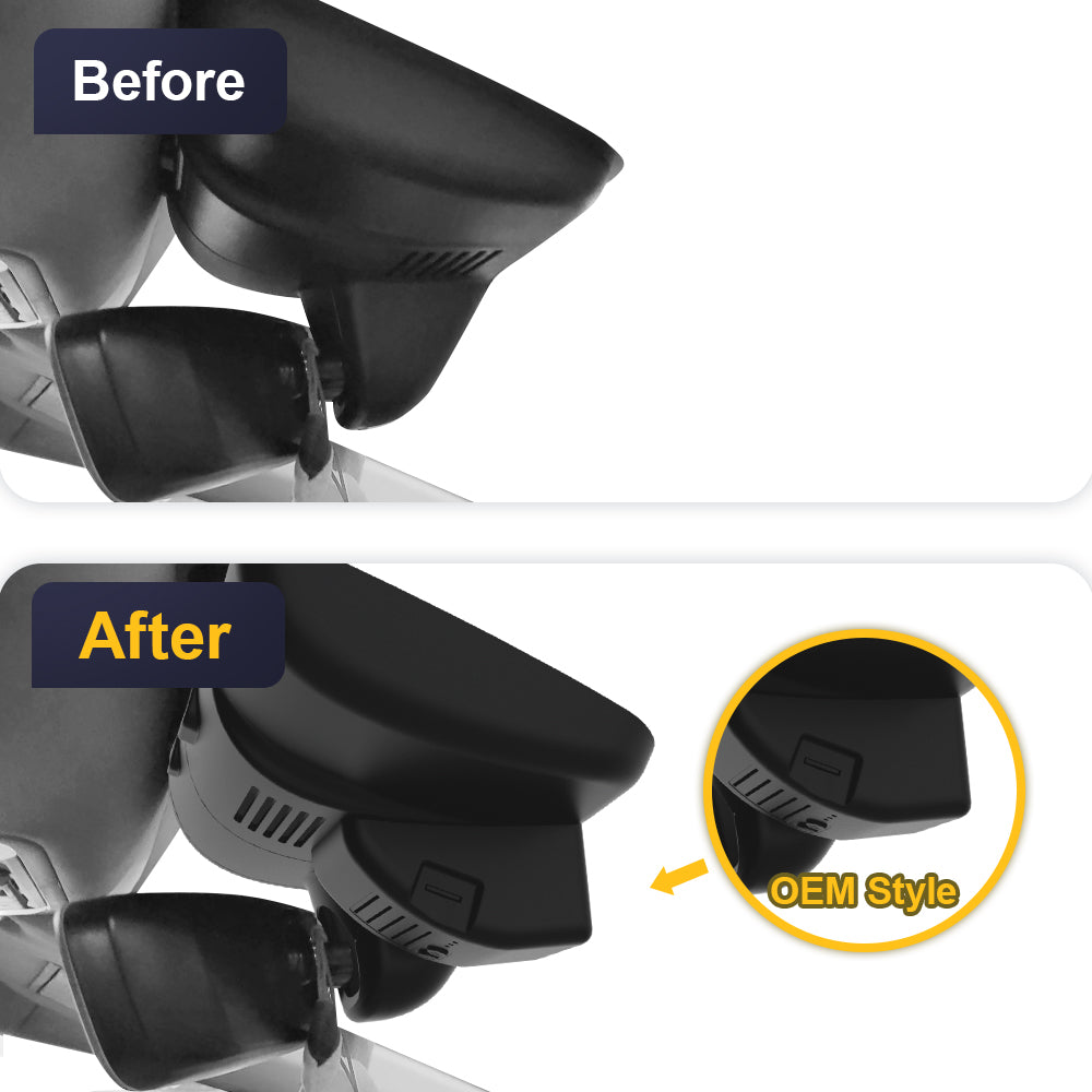 The OEM-style dash cam with a 1:1 restoration of the original rearview mirror back cover shape design, which will not block the driving line of sight.