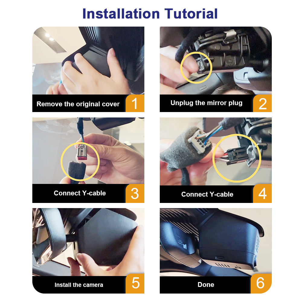 Fitcamx Dash Cam a de nouvelles méthodes de puissance à partir de Rétroviseur à carrémage automatique avec un câblage caché et une installation facile avec la méthode de prise à boucher. Pas besoin de retirer le montant A et de connecter la boîte de fusibles de voiture et le allume-cigare.