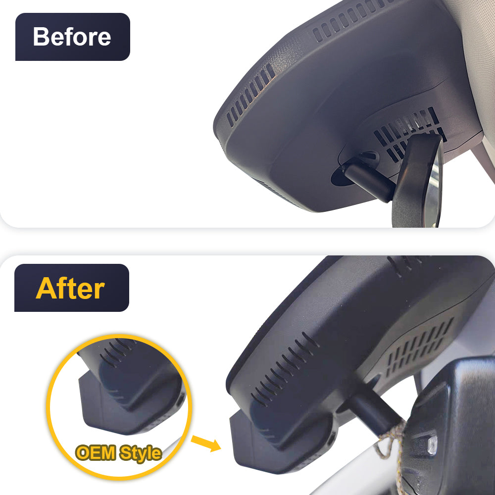 The OEM-style dash cam with a 1:1 restoration of the original rearview mirror back cover shape design, which will not block the driving line of sight.