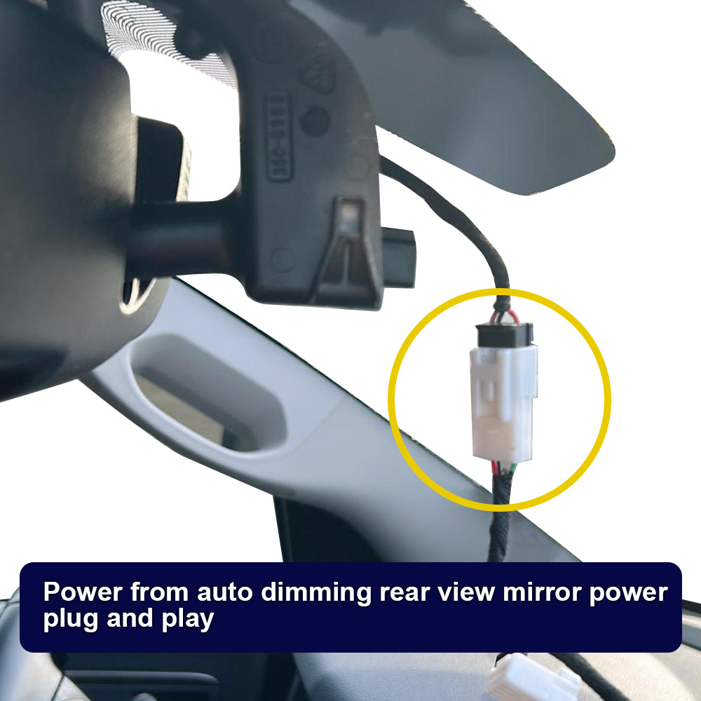 FITCAMX dash cam has brand-new methods for power from Auto-dimming rear view mirror with hidden wiring and easy installation with the method of plug to plug. No need to remove A-pillar and connect the car fuse box and the cigarette lighter.