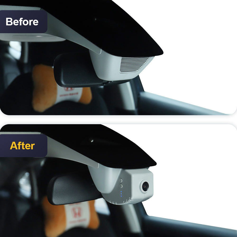 FITCAMX dash cam has brand-new methods for power from Overhead console panel with hidden wiring and easy installation with the method of plug to plug. No need to remove A-pillar and connect the car fuse box and the cigarette lighter.