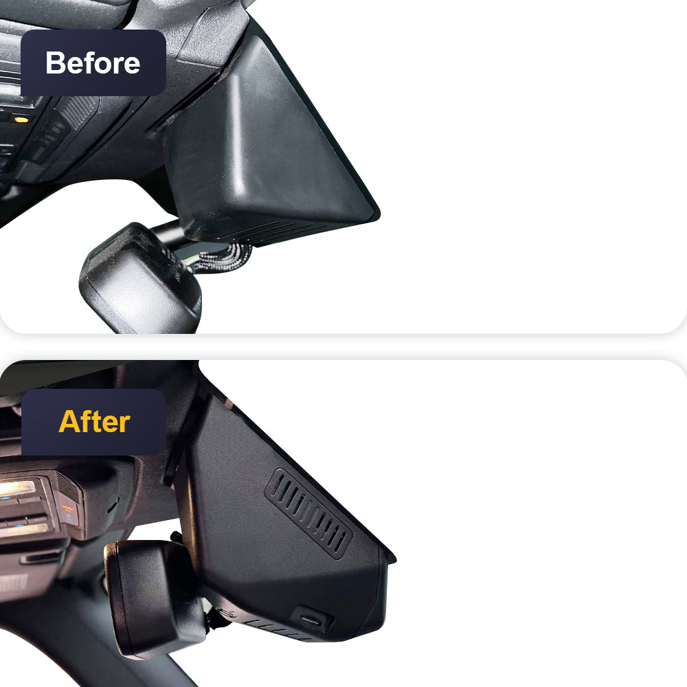 The OEM-style dash cam with a 1:1 restoration of the original rearview mirror back cover shape design, which will not block the driving line of sight.