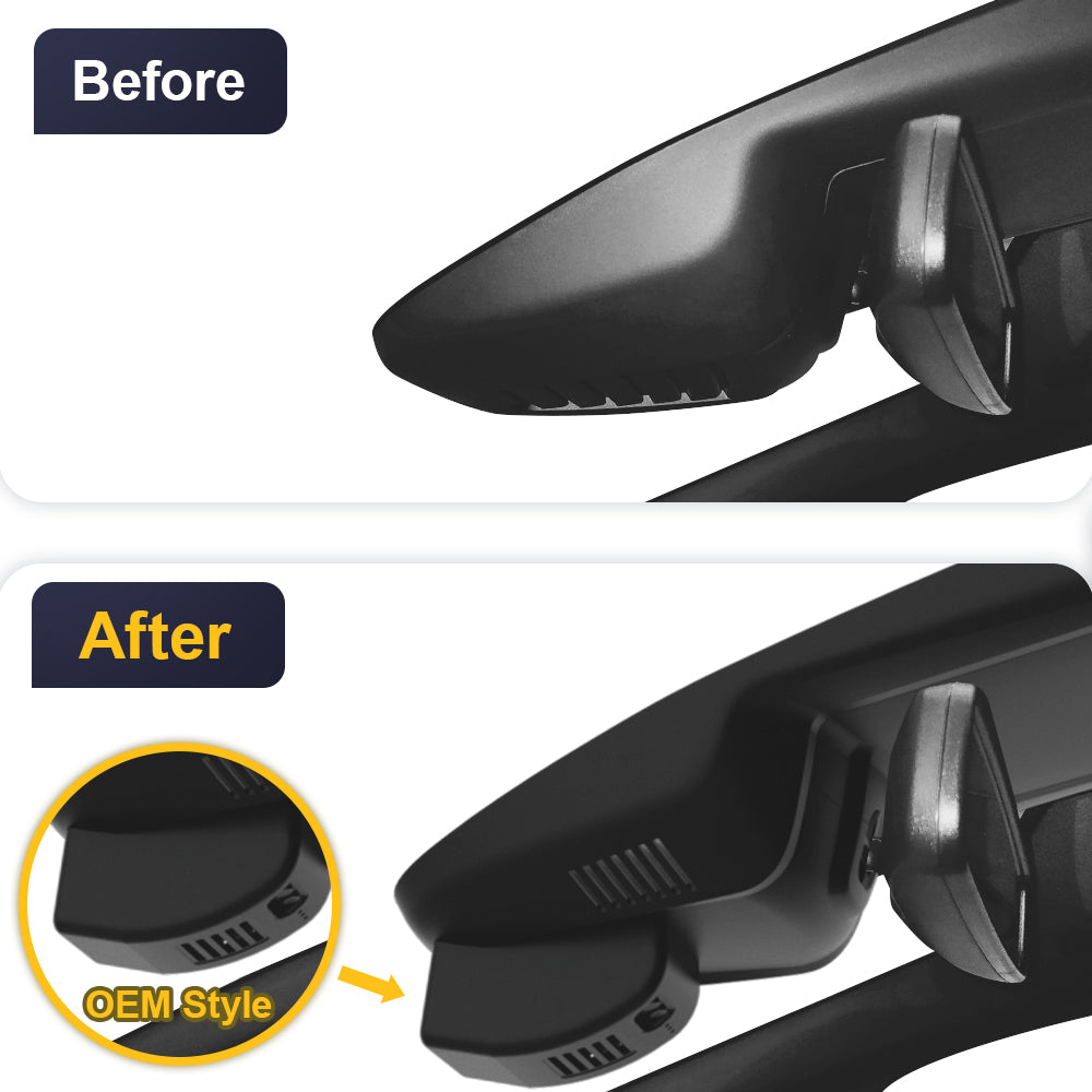 The OEM-style dash cam with a 1:1 restoration of the original rearview mirror back cover shape design, which will not block the driving line of sight.
