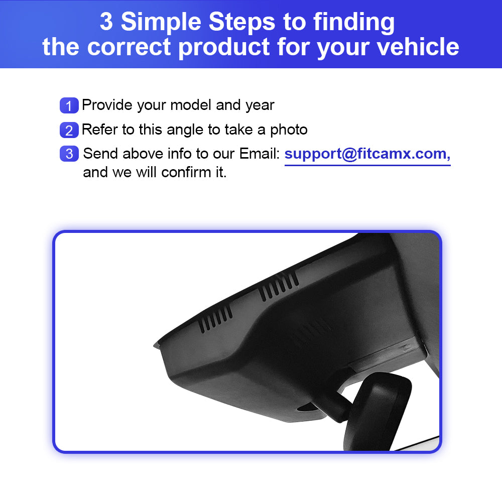 Noted: Since our products are custom dash cam, a photo of the rear mirror cover is necessary and we will check and send you the correct model. If no photo is provided, we will ship your order and may delay shipping or send the model not fit your car.