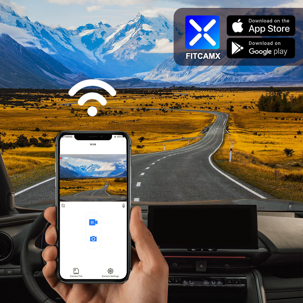 Using phone APP to connect the WiFi of FITCAMX dash cam for downloading videos and sharing them to your social media. Downloading videos is no need for mobile data traffic. (support in Android & IOS)