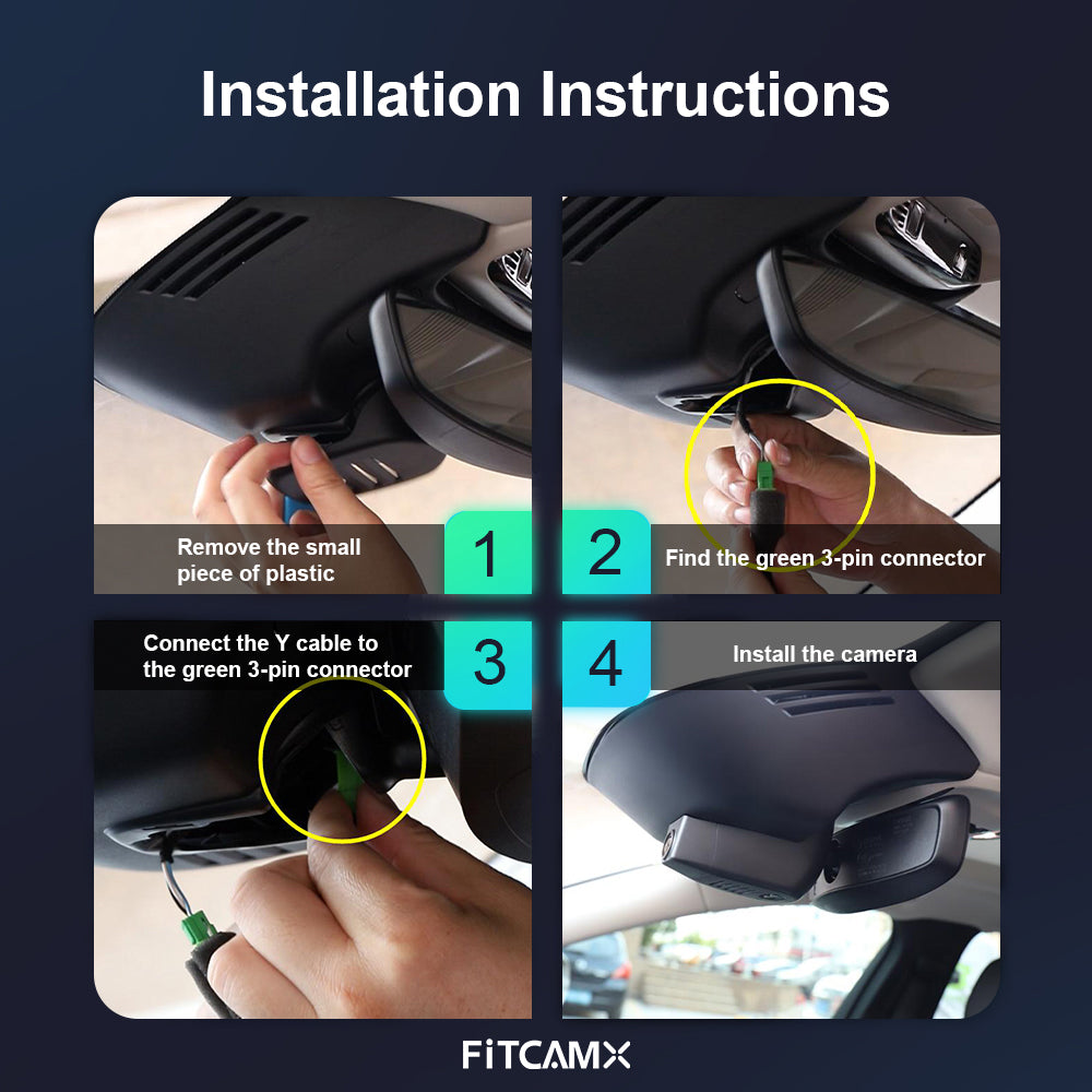 FITCAMX dash cam has brand-new methods for power from Auto-dimming rear view mirror with hidden wiring and easy installation with the method of plug to plug. No need to remove A-pillar and connect the car fuse box and the cigarette lighter.